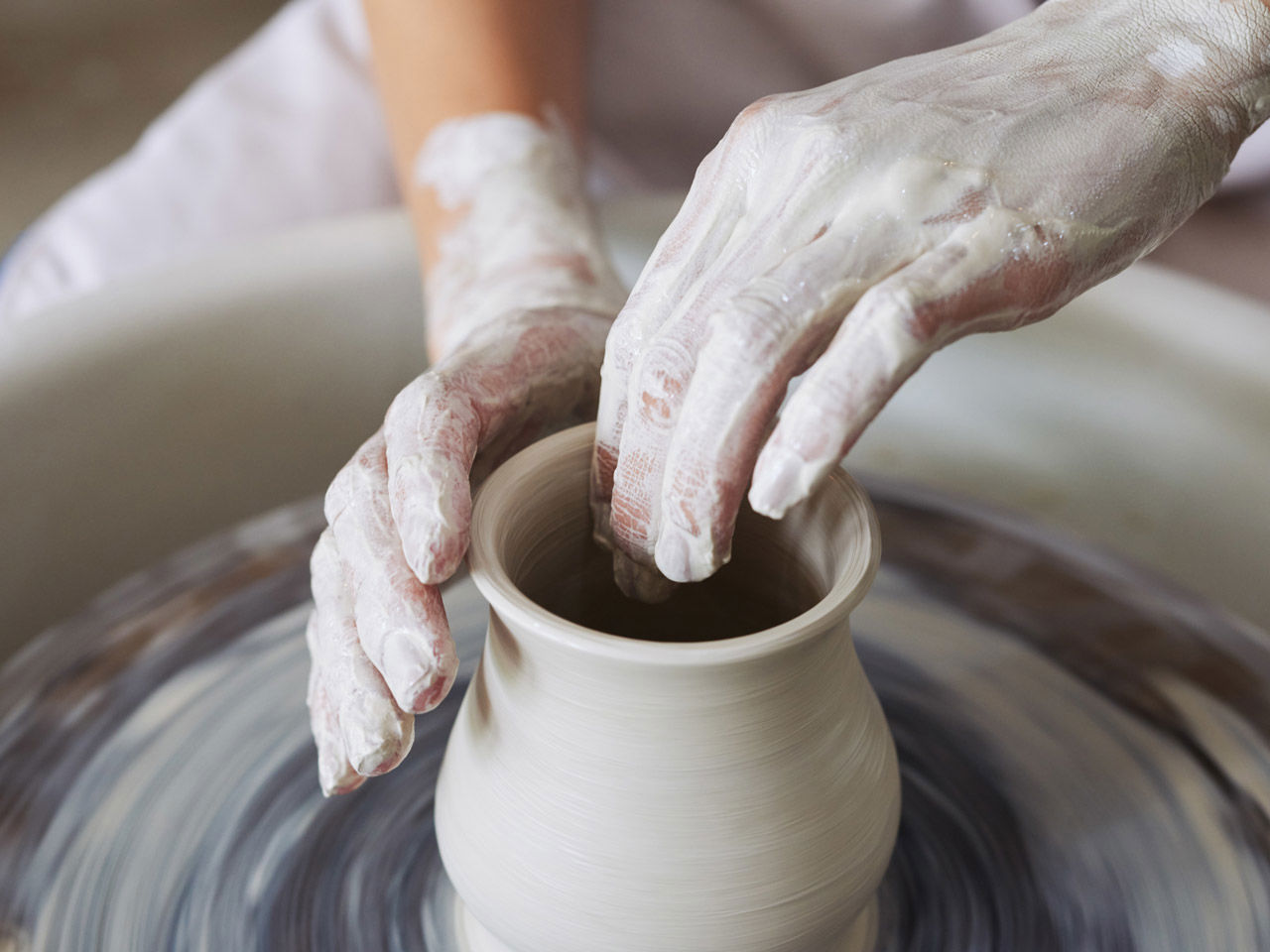 Nel laboratorio artigianale, l’argilla prende forma tra le mani, mentre si scopre il processo che trasforma la materia lavica in ceramica.