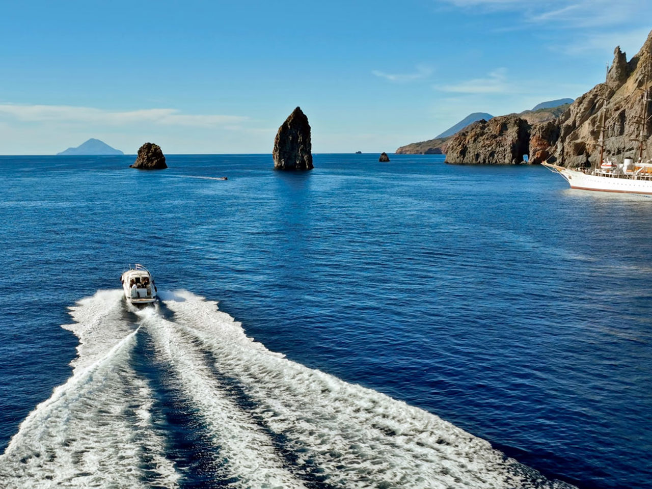 Le rotte conducono verso le destinazioni più iconiche dell’arcipelago, come Panarea, Stromboli, Salina, Lipari, Filicudi e Alicudi, tra mondanità, forza vulcanica e silenzi primordiali. A bordo, ogni dettaglio è curato: teli mare, prosecco al tramonto, frutta fresca e snack locali, con skipper e hostess dedicati per garantire privacy e comfort.